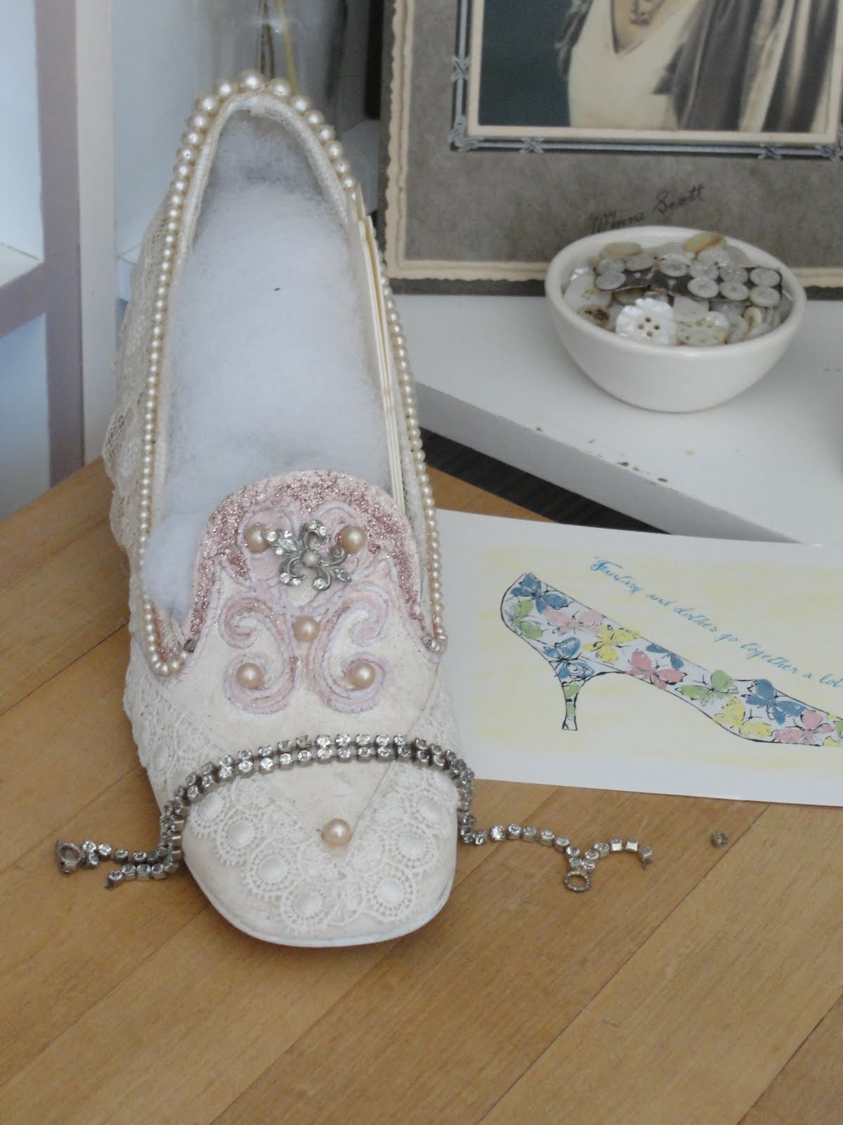 The shoe is my wedding shoe. It no longer fits so I painted it and decorated it with bling.
